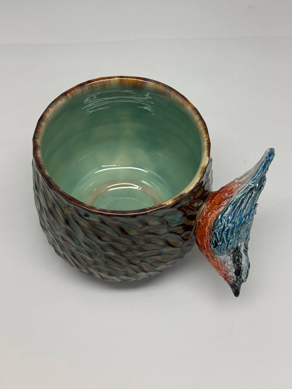 объём - 500мл, выполнена из немецкой высоко температурной глины и покрыта пищевыми безопасными глазурями, прошла высокий обжиг. Можно мыть в посудомоечной машине и использовать в микроволновке. Полностью ручная работа