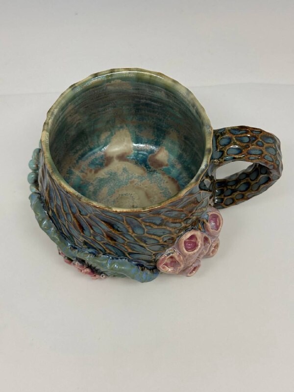 Объём - 400мл, выполнена из немецкой высоко температурной глины и покрыта пищевыми безопасными глазурями, прошла высокий обжиг. Можно мыть в посудомоечной машине и использовать в микроволновке. Полностью ручная работа