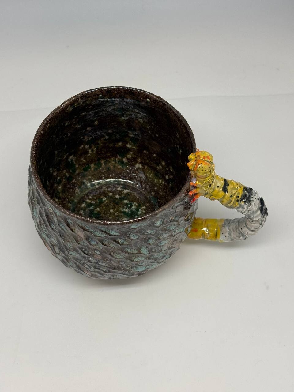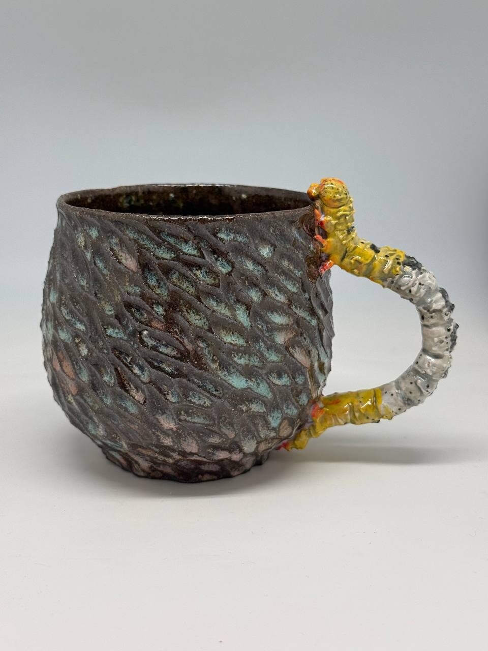 Объём - 520мл, выполнена из немецкой высоко температурной глины и покрыта пищевыми безопасными глазурями, прошла высокий обжиг. Можно мыть в посудомоечной машине и использовать в микроволновке. Полностью ручная работа