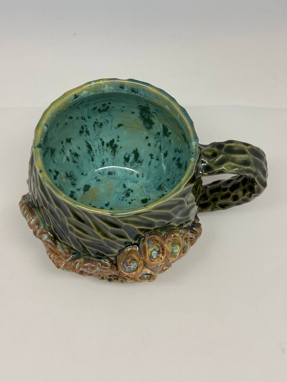 Объём - 400мл, выполнена из немецкой высоко температурной глины и покрыта пищевыми безопасными глазурями, прошла высокий обжиг. Можно мыть в посудомоечной машине и использовать в микроволновке. Полностью ручная работа