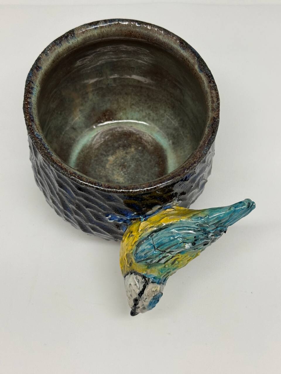 Объём - 400мл, выполнена из немецкой высоко температурной глины и покрыта пищевыми безопасными глазурями, прошла высокий обжиг. Можно мыть в посудомоечной машине и использовать в микроволновке. Полностью ручная работа