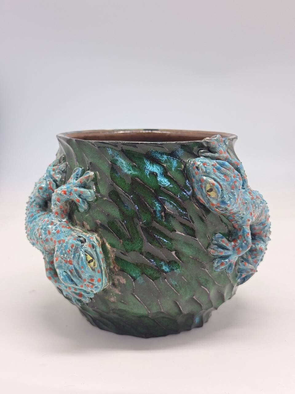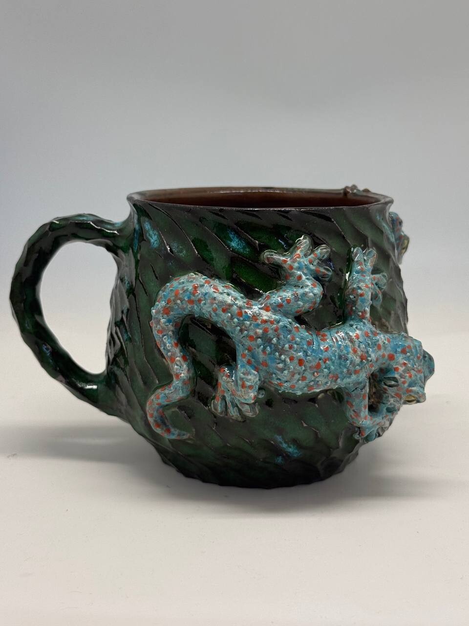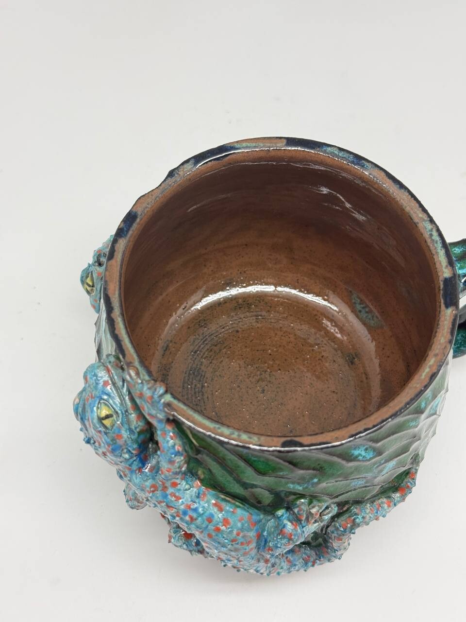 Объём - 650мл, выполнена из немецкой высоко температурной глины и покрыта пищевыми безопасными глазурями, прошла высокий обжиг. Можно мыть в посудомоечной машине и использовать в микроволновке. Полностью ручная работа
