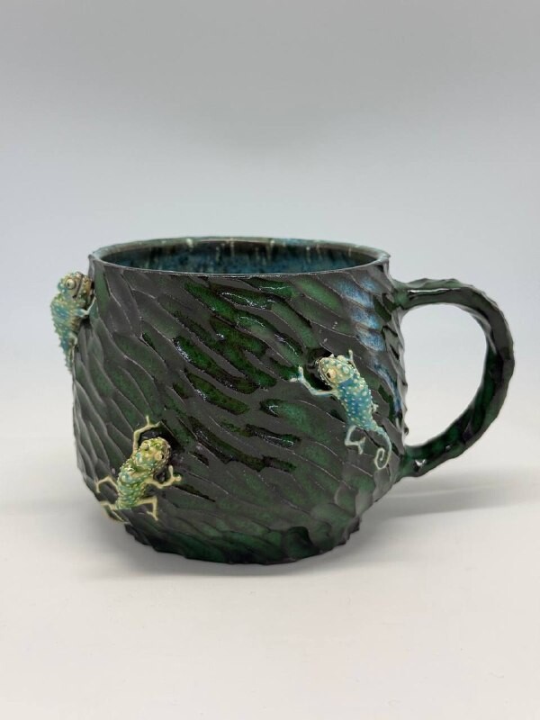 Объём - 700мл, выполнена из немецкой высоко температурной глины и покрыта пищевыми безопасными глазурями, прошла высокий обжиг. Можно мыть в посудомоечной машине и использовать в микроволновке. Полностью ручная работа