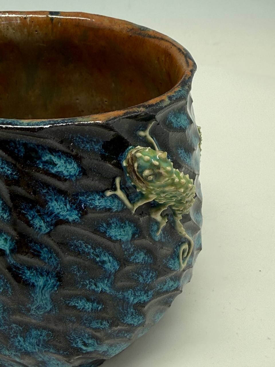 Объём - 300мл, выполнена из немецкой высоко температурной глины и покрыта пищевыми безопасными глазурями, прошла высокий обжиг. Можно мыть в посудомоечной машине и использовать в микроволновке. Полностью ручная работа