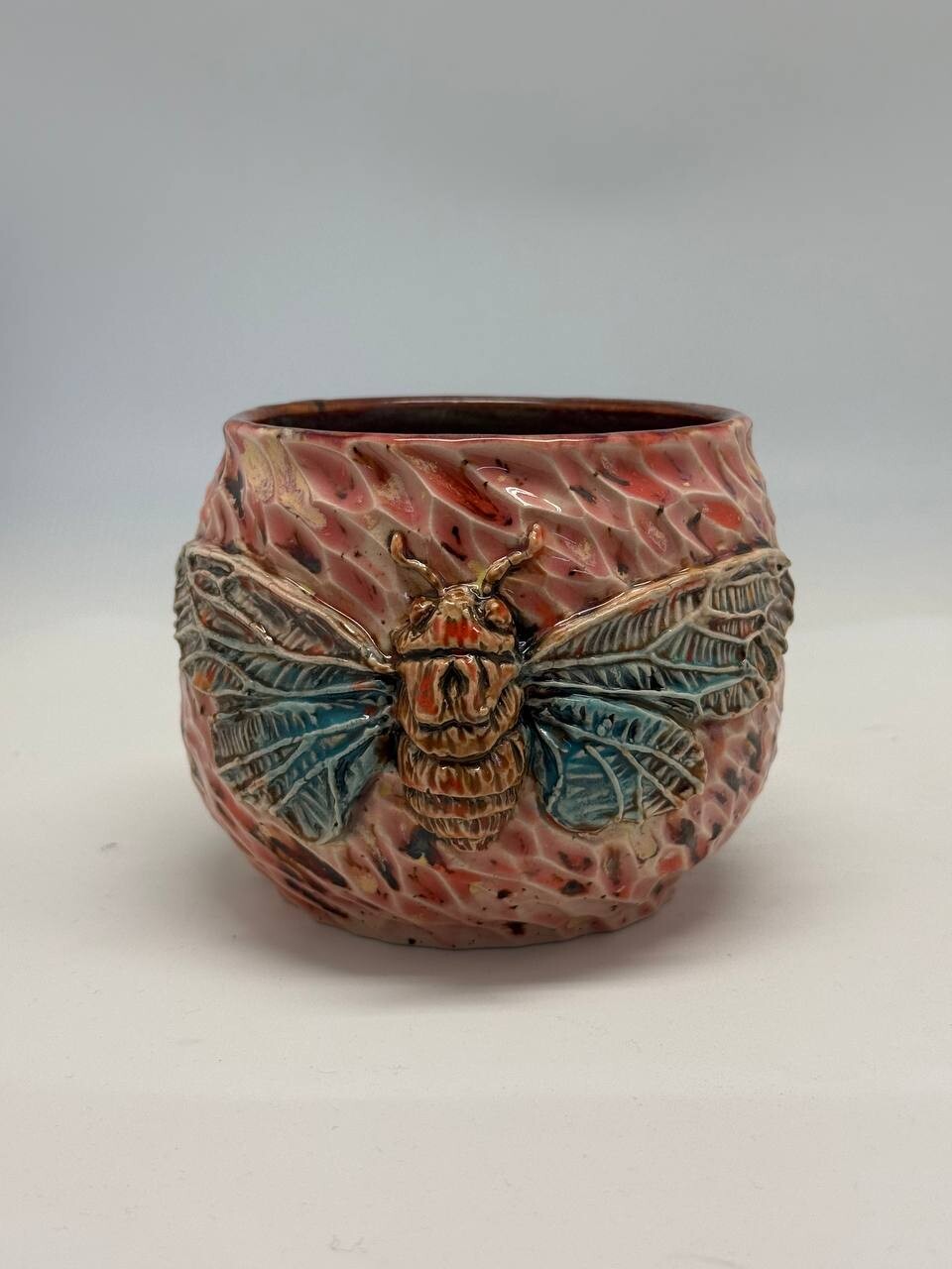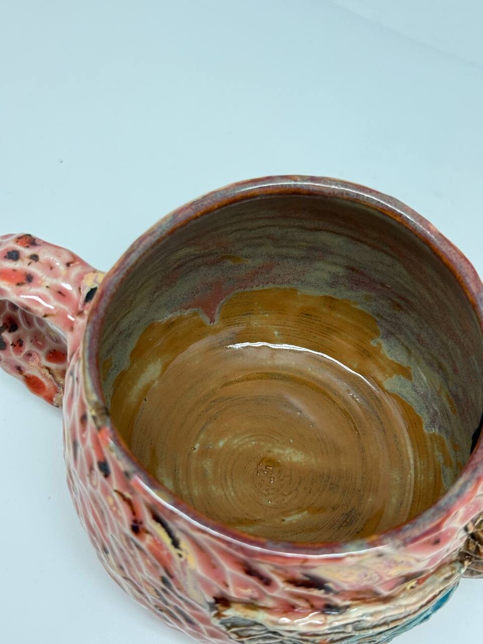 Объём - 700мл, выполнена из немецкой высоко температурной глины и покрыта пищевыми безопасными глазурями, прошла высокий обжиг. Можно мыть в посудомоечной машине и использовать в микроволновке. Полностью ручная работа