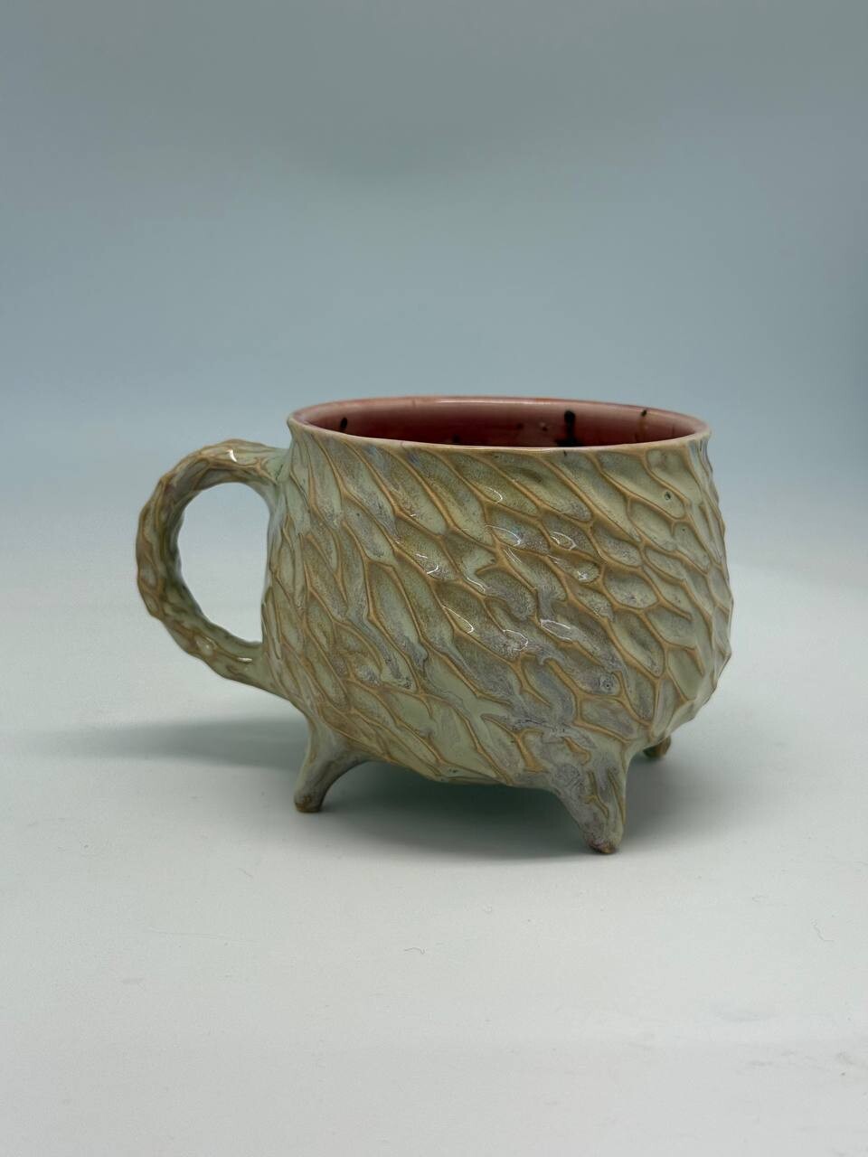 Объём - 400мл, выполнена из немецкой высоко температурной глины и покрыта пищевыми безопасными глазурями, прошла высокий обжиг. Можно мыть в посудомоечной машине и использовать в микроволновке. Полностью ручная работа