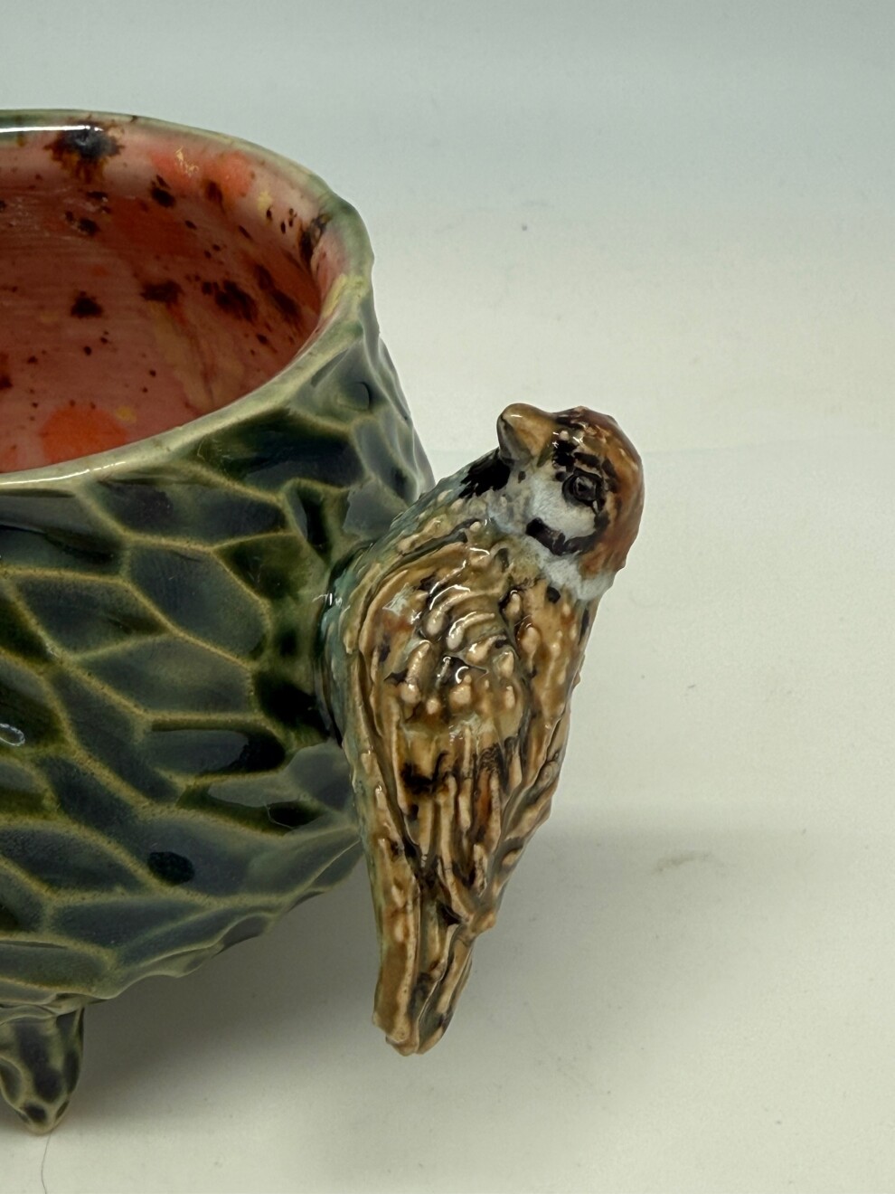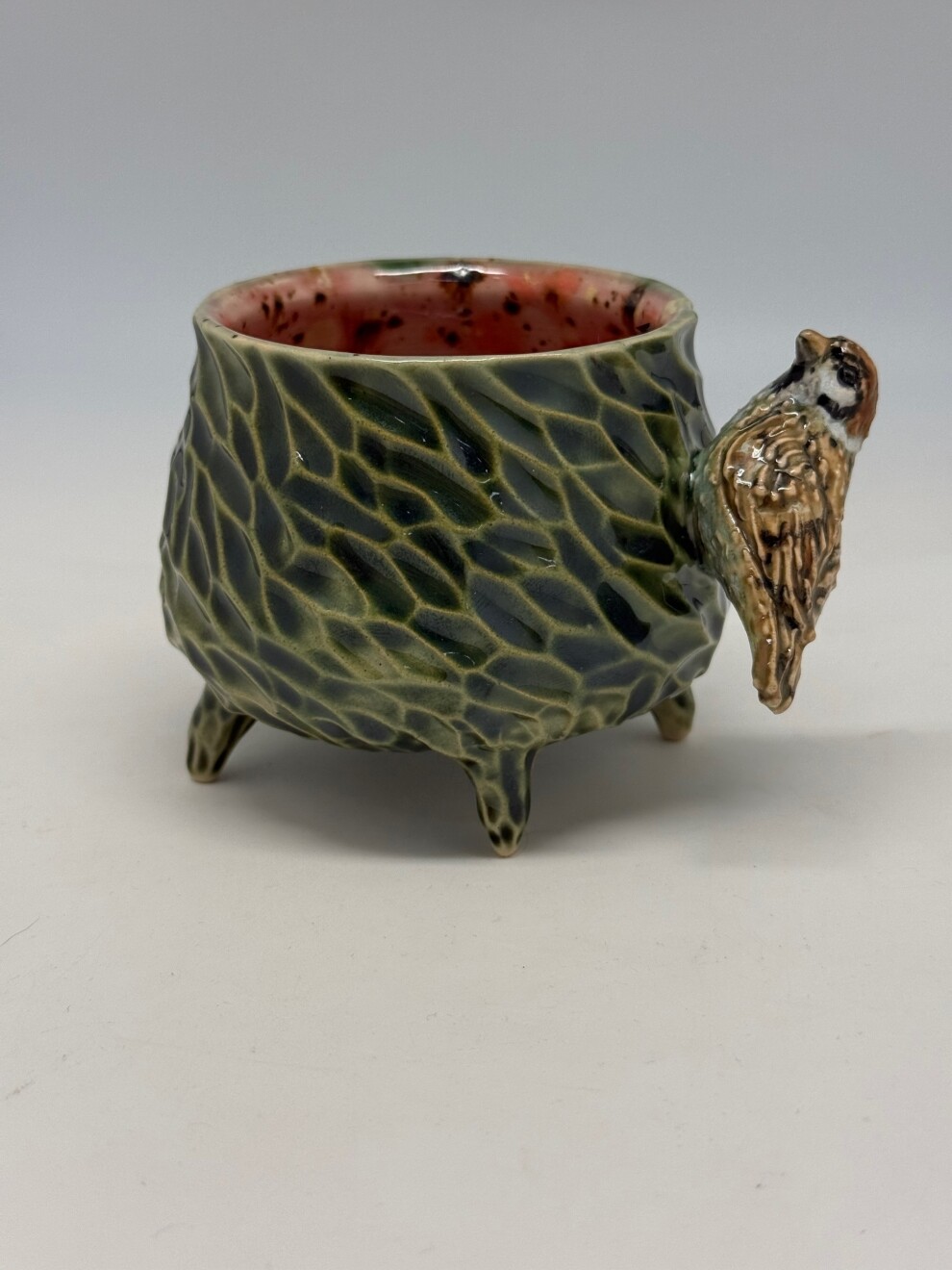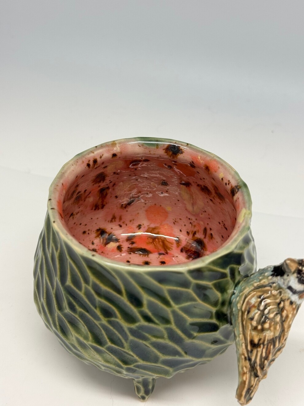 Объём - 350мл, выполнена из немецкой высоко температурной глины и покрыта пищевыми безопасными глазурями, прошла высокий обжиг. Можно мыть в посудомоечной машине и использовать в микроволновке. Полностью ручная работа