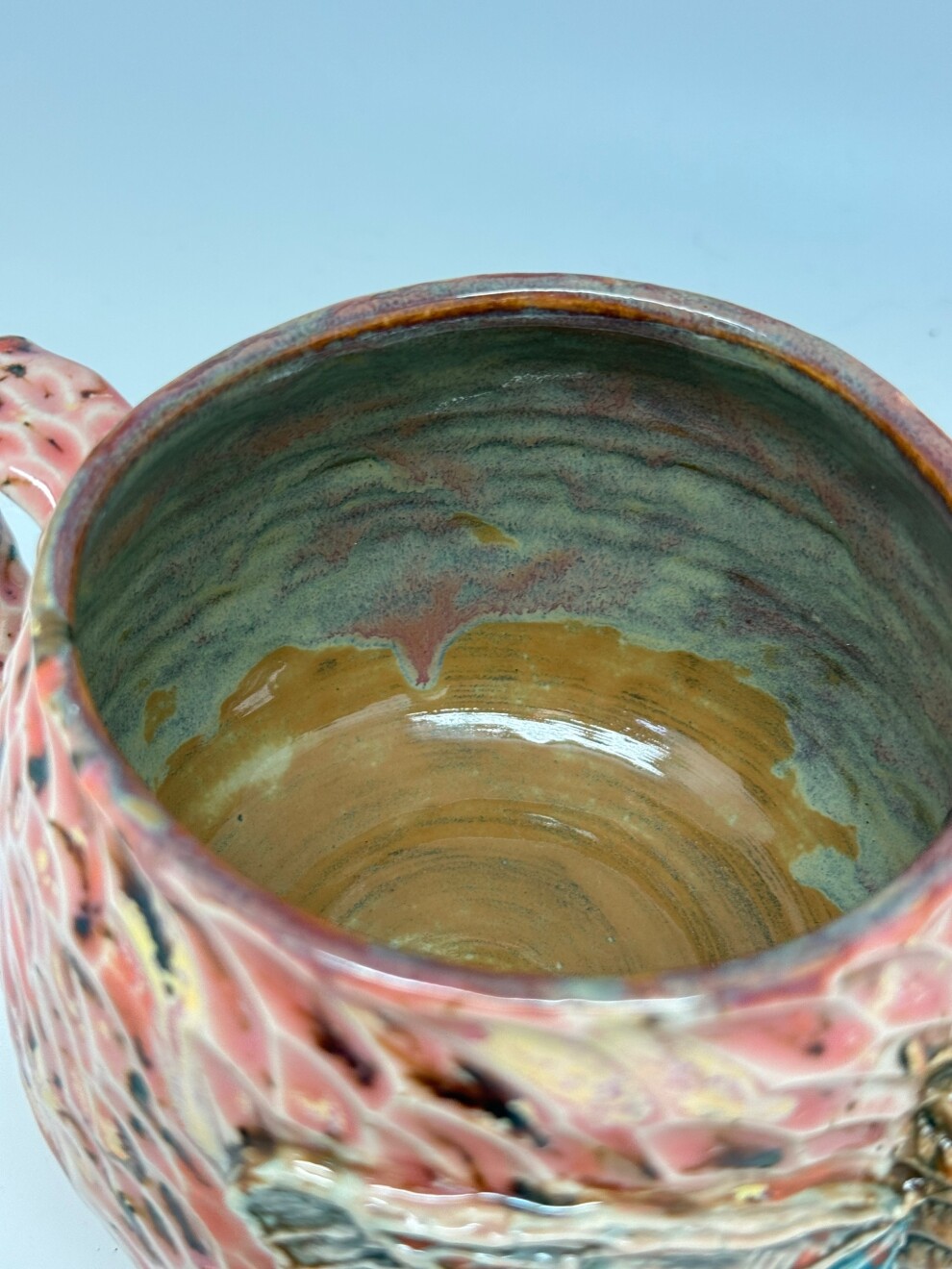 Объём -700мл, выполнена из немецкой высоко температурной глины и покрыта пищевыми безопасными глазурями, прошла высокий обжиг. Можно мыть в посудомоечной машине и использовать в микроволновке. Полностью ручная работа