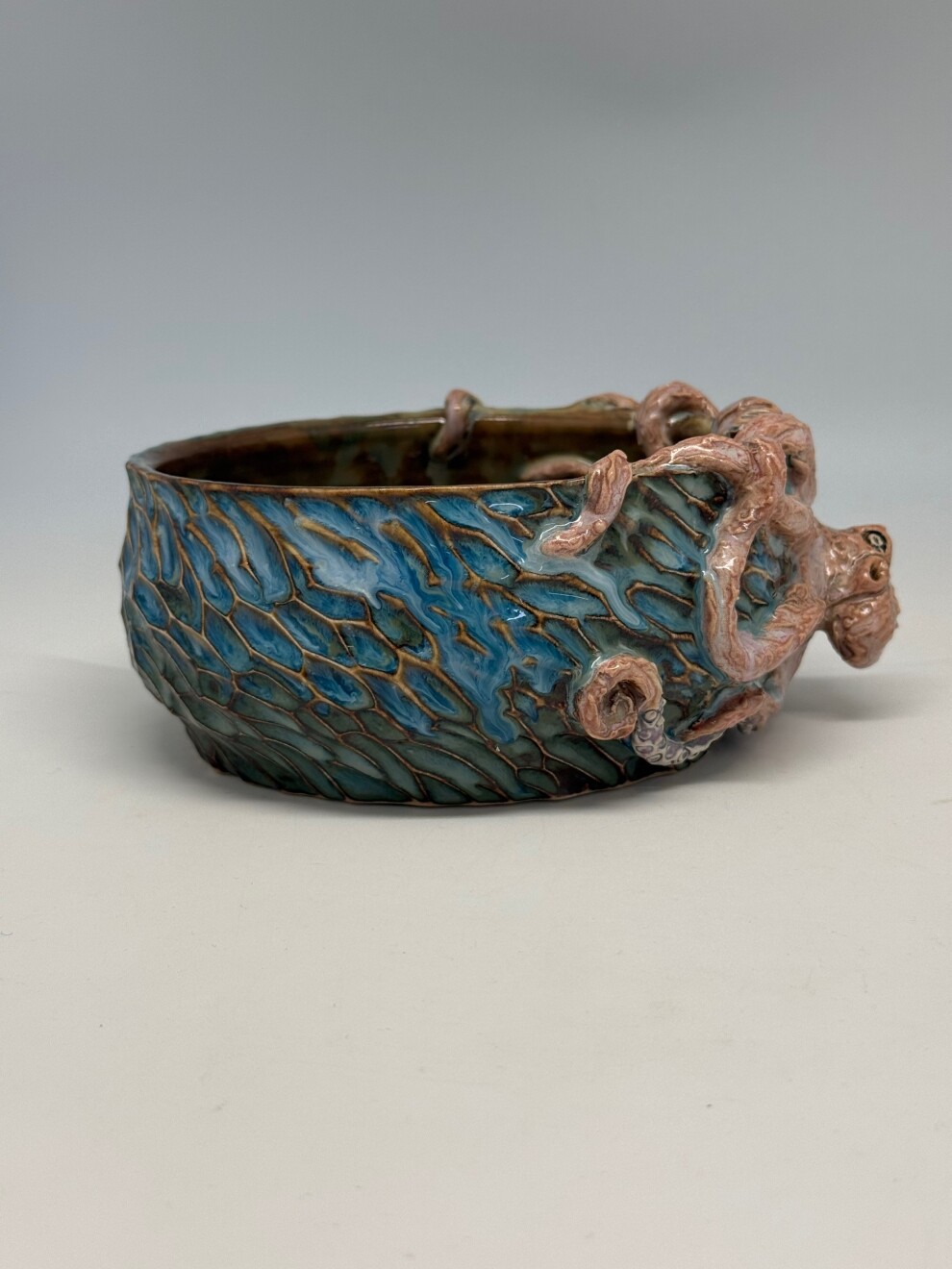 Объём - 600мл, выполнена из немецкой высоко температурной глины и покрыта пищевыми безопасными глазурями, прошла высокий обжиг. Можно мыть в посудомоечной машине и использовать в микроволновке. Полностью ручная работа
