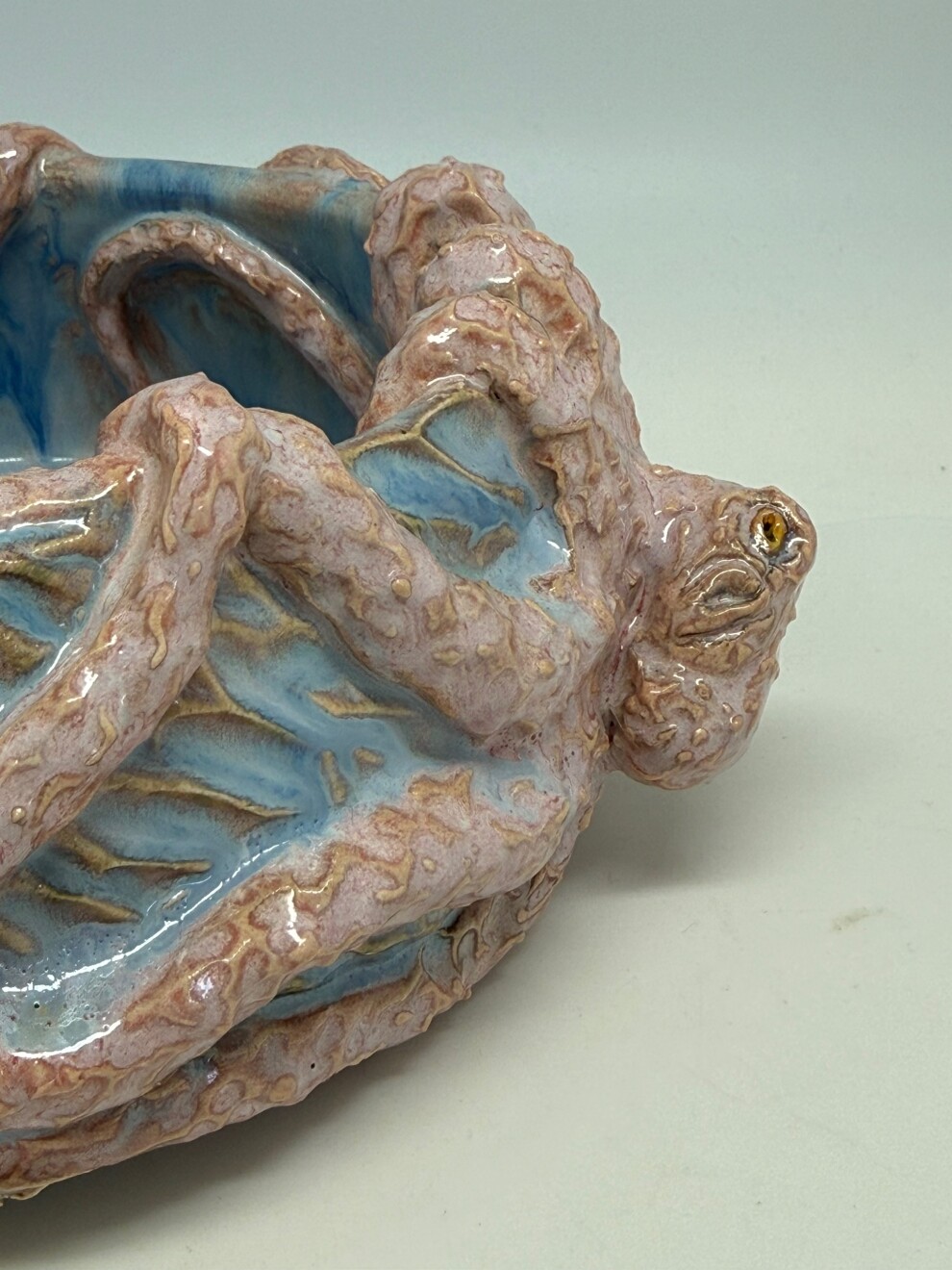 Объём - 700мл, выполнена из немецкой высоко температурной глины и покрыта пищевыми безопасными глазурями, прошла высокий обжиг. Можно мыть в посудомоечной машине и использовать в микроволновке. Полностью ручная работа