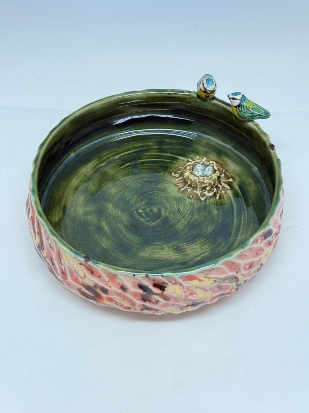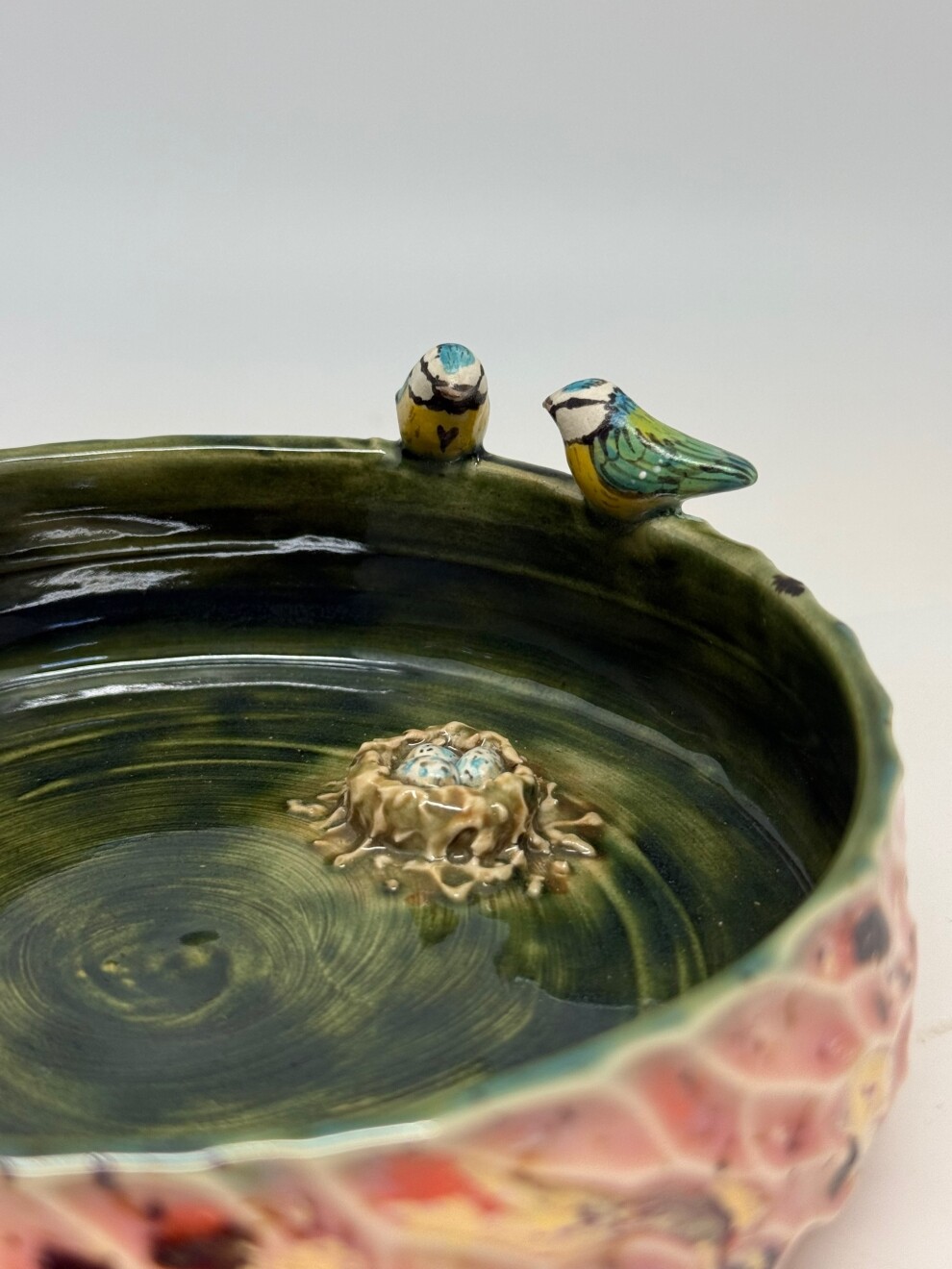 Объём - 300мл, выполнена из немецкой высоко температурной глины и покрыта пищевыми безопасными глазурями, прошла высокий обжиг. Можно мыть в посудомоечной машине и использовать в микроволновке. Полностью ручная работа