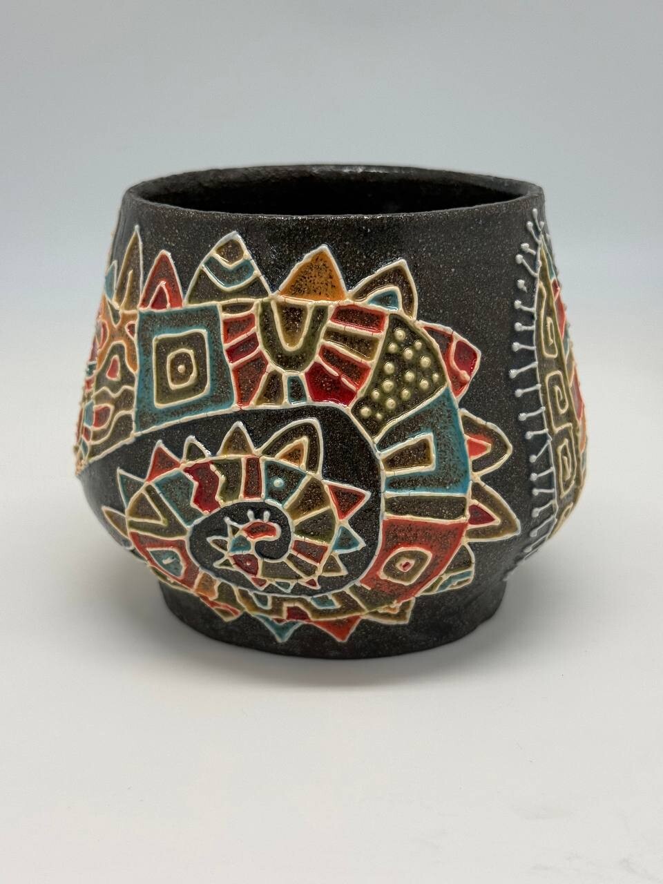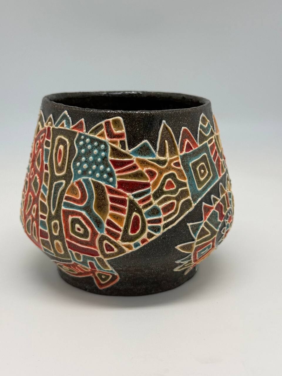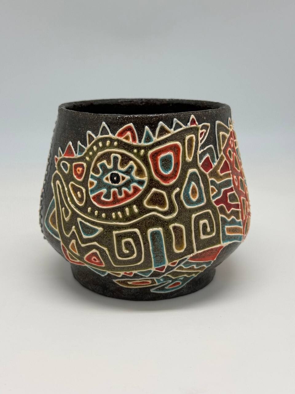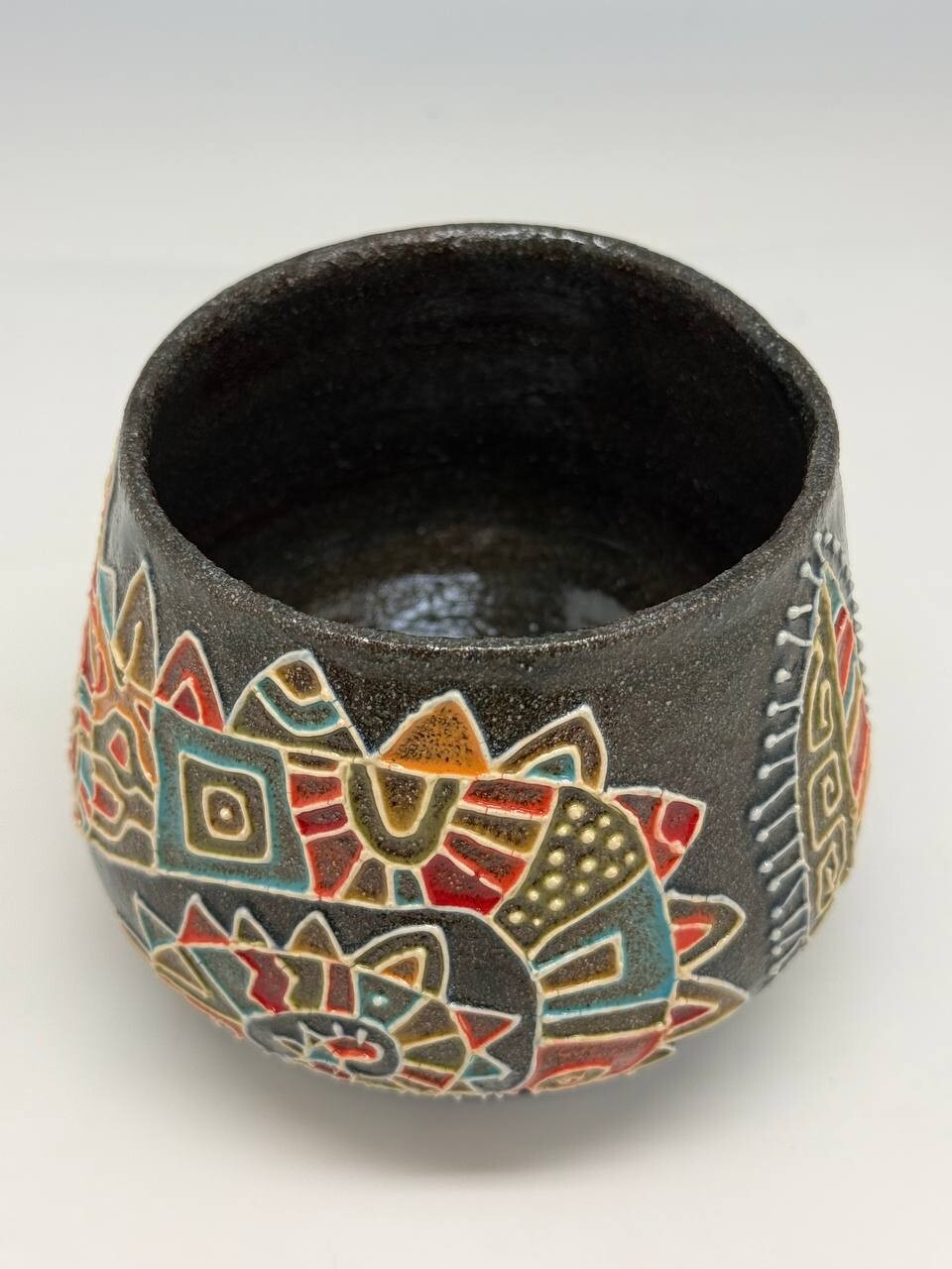 Объём - 700мл, выполнена из немецкой высоко температурной глины и покрыта пищевыми безопасными глазурями, прошла высокий обжиг. Можно мыть в посудомоечной машине и использовать в микроволновке. Полностью ручная работа